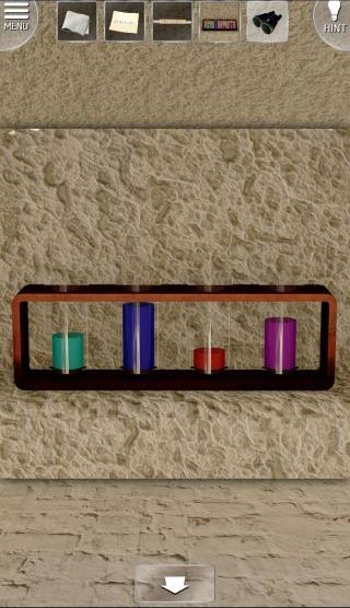 4つの岩の高さの順で先ほどのロウソクを見て、『紫赤緑青』となるのを確認。