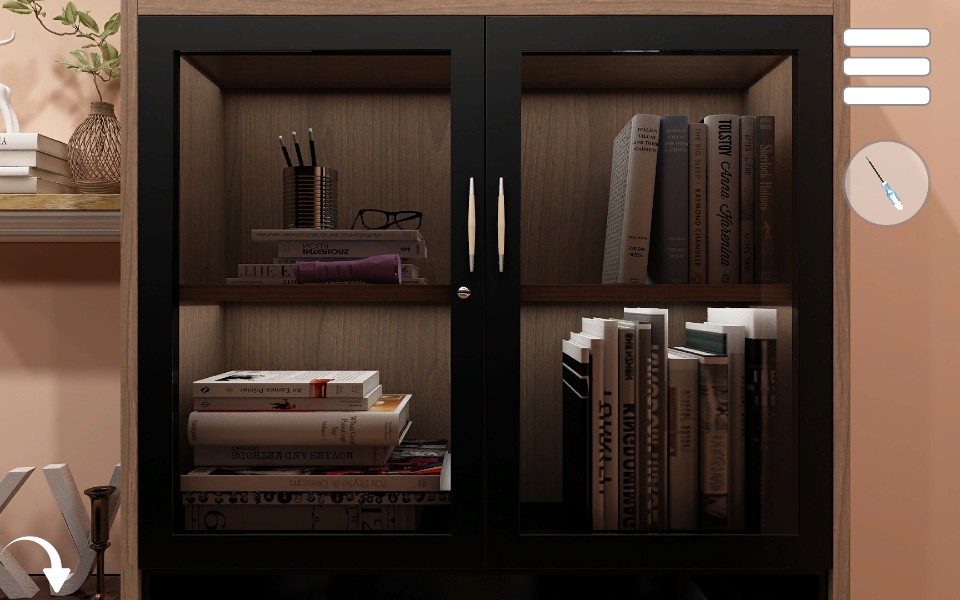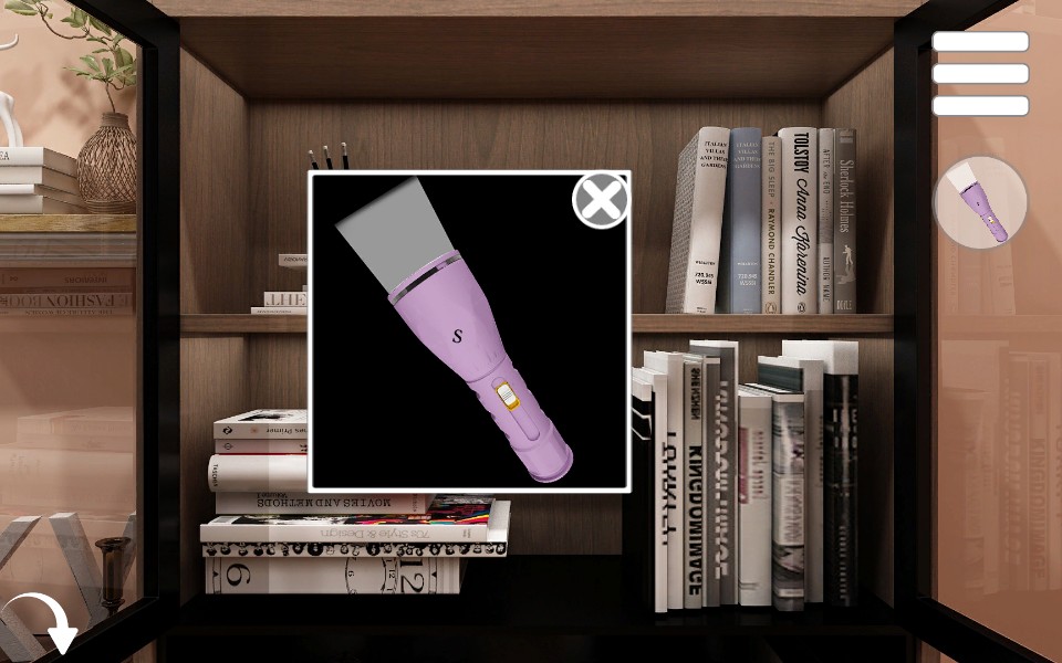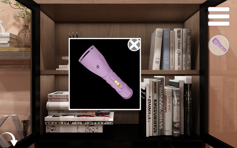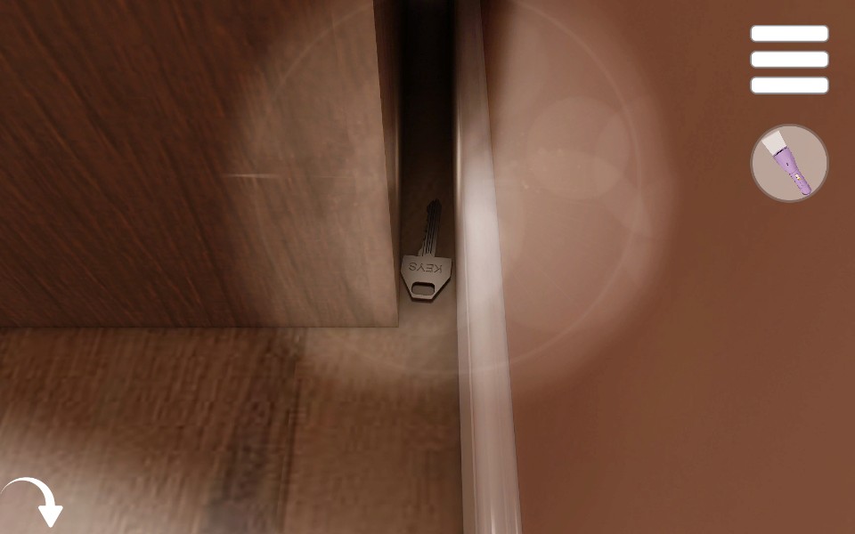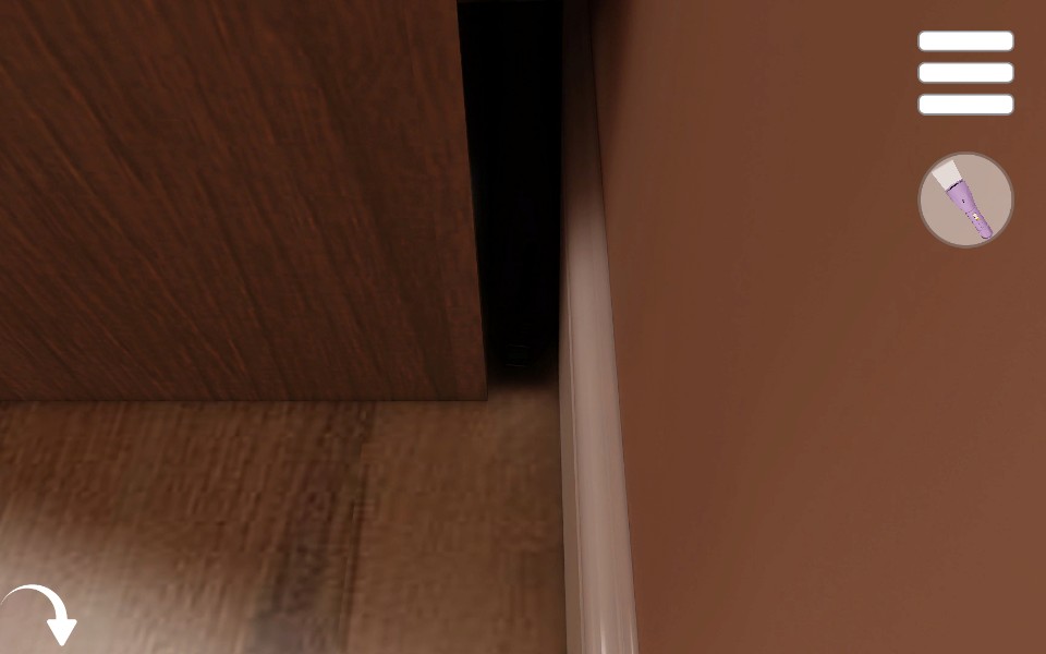 棚の右下から後ろの隙間を調べて、「懐中電灯」を使う。