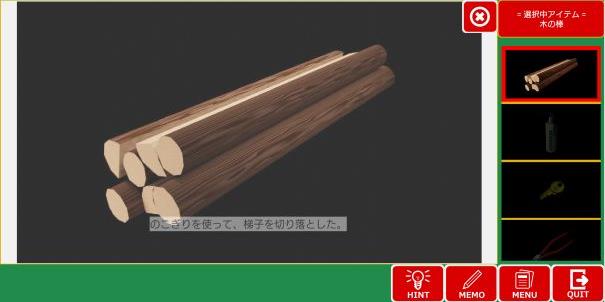 ハシゴに「のこぎり」を使って、「木の棒」を入手。