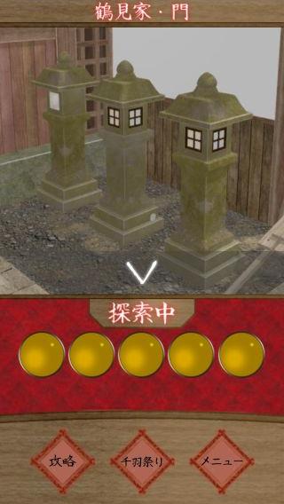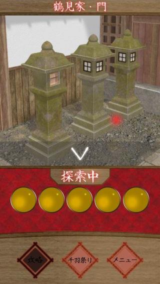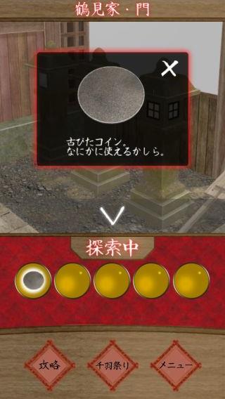 右の灯籠を拡大して、落ちている「古びたコイン」を入手。