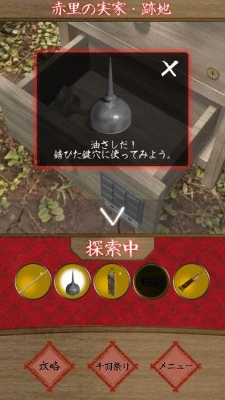 「油差し」を使って、「物置きの鍵」を使う。
