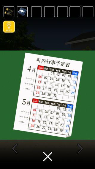 「行事予定表(ペンキ付き)」を入手して、土曜日の日付『上=05、下=31』を確認。