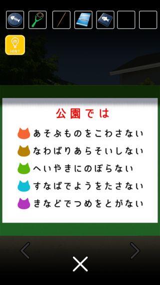 『紫(1)=き、青(2)=な、緑(3)=や、茶(4)=り、オレンジ(5)=の』を確認。