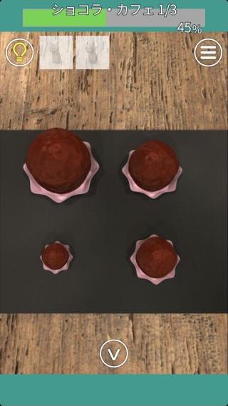 左の4つのケーキの大きさを確認して、中央奥へ。