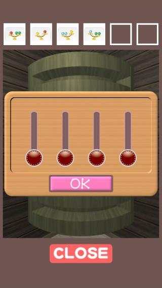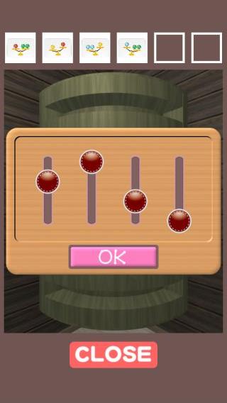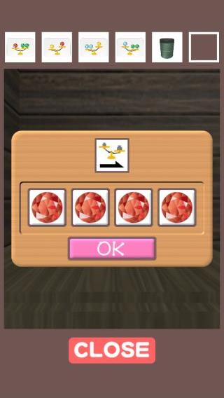4枚の「天秤の絵」から重さを割り出して、『緑、水色、赤、黄』に合わせる。