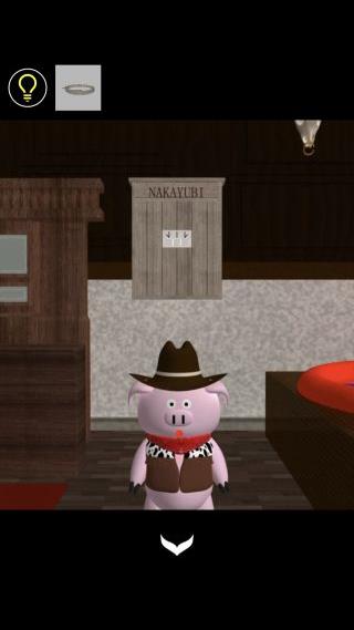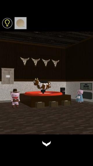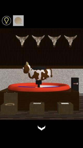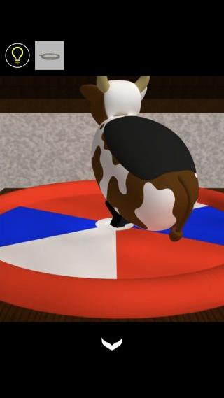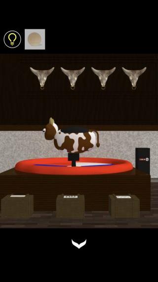 右奥のボックスに「コイン」を入れて、ロデオが指す順番『右下赤、左青、右上白、左下白、右青、左上赤』を確認。