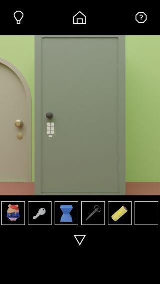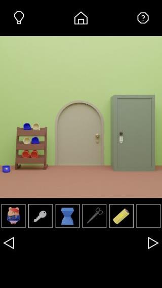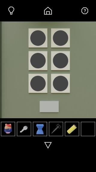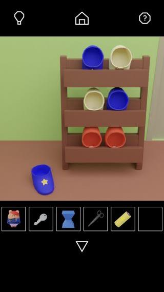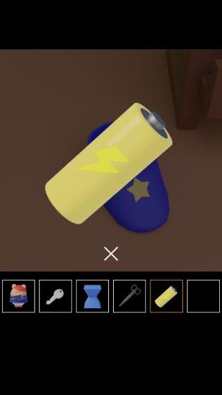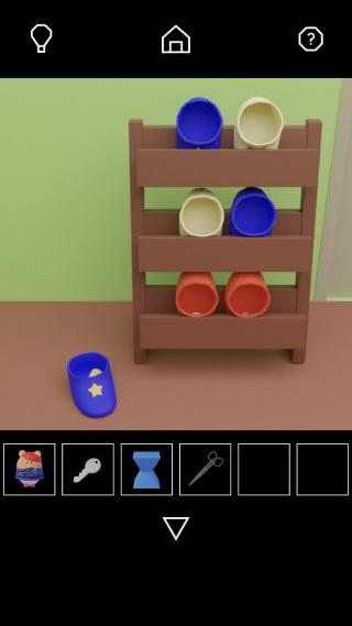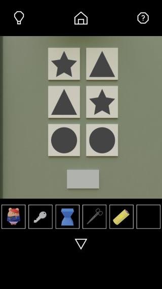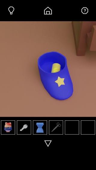 靴の中から「電池」を入手して、右の6足の靴の色に図形を当てはめる。