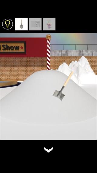 右の雪山を拡大して、「シャベル」を使う。