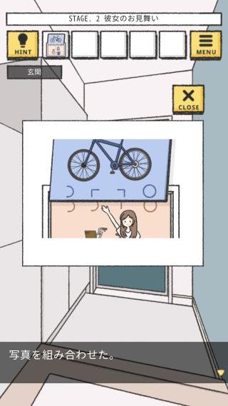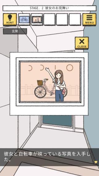 右の壁から「彼女と自転車が映っている写真」を入手。