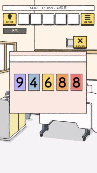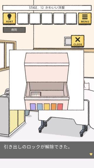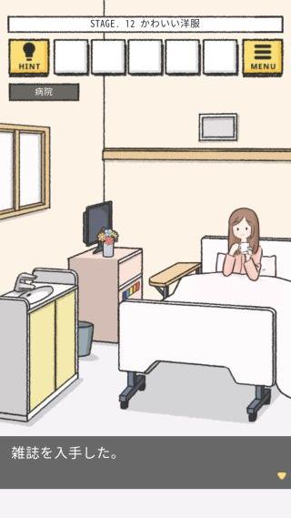 脱出ゲーム 彼女の願いは叶わなかった 無料 3.4 評価する 送信する LIB(Kazunori Shojima) Chapter 12 かわいい洋服 中央の棚の上の花瓶を拡大して、花の色と花びらの数を確認。 棚の装置を拡大。 花びらの数『94688』に合わせて開ける。 雑誌を入手して、タップで食事をする。 Chapter 1 彼女のいない朝 Chapter 2 彼女のお見舞い Chapter 3 彼女の欲しいもの Chapter 4 病室での生活 Chapter 5 体調の悪い日 Chapter 6 郵便物 Chapter 7 普通の暮らし Chapter 8 二人の洗濯物 Chapter 9 一人きりの部屋 Chapter 10 病室での仕事 Chapter 11 たくさんの薬 Chapter 12 かわいい洋服 Chapter 13 彼女とのメール Chapter 14 パンクした自転車 Chapter 15 二人の写真 Chapter 16 彼女の病室 Chapter 17 僕からの招待状 Chapter 18 彼女への贈り物 Chapter 19 彼女のアルバム Chapter 20 指輪 Chapter 21 好きな音楽 Chapter 22 衣装屋からの電話 Chapter 23 二人だけの結婚式