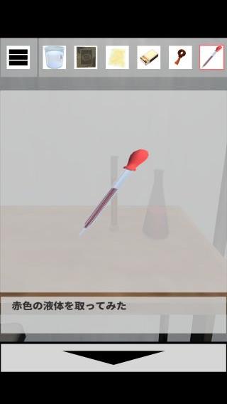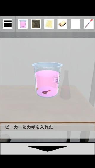 「スポイト」の赤色の液体を入れて、「さびたカギ」を入れる。