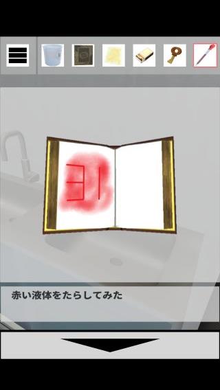 最後の白紙のページに「スポイト」の赤色の液体を垂らす。