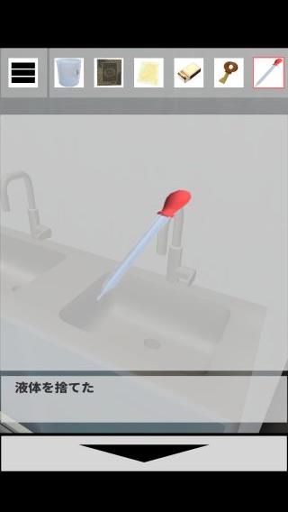 シンクに「スポイト」を使って、赤色の液体を捨てる。