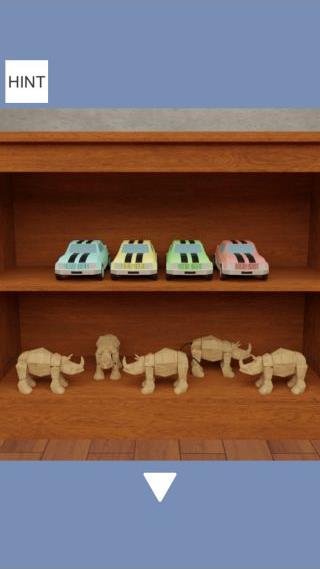 中央の棚を拡大して、靴の色『青黄緑赤』を確認。