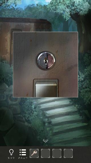 奥に進んで、廃車両の扉を拡大して「鍵」を使う。