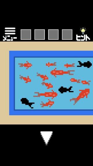 左の金魚すくいを調べて、『赤大=3、赤小=9、黒=3』を確認。
