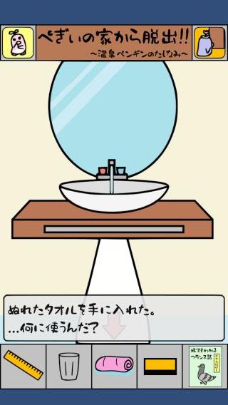 蛇口に「スパナ」を使って水を出して、「ピンクのタオル」を入手。