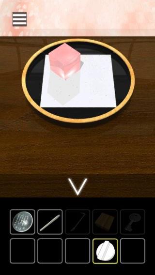 テーブルの左上の右下の和菓子を拡大して、それぞれの位置を確認。