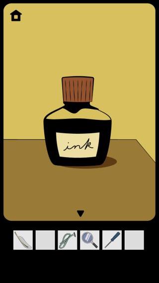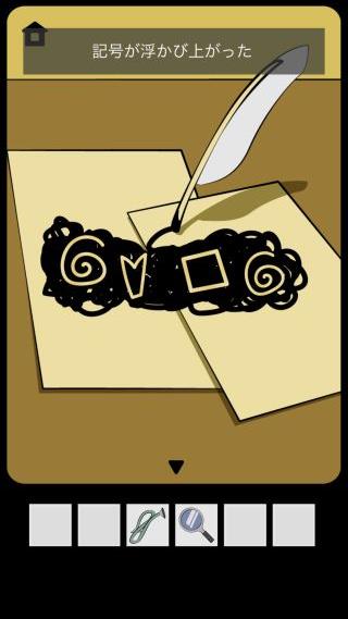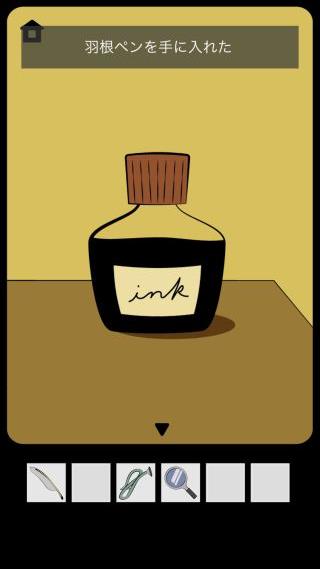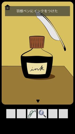 「羽根ペン」を入手して、テーブルの上のメモを拡大。