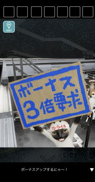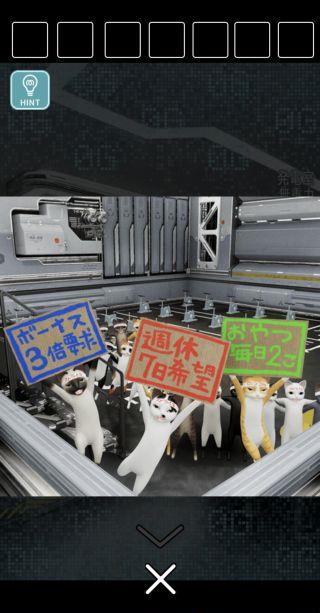 脱出ゲーム 猫様の宇宙船からの脱出 無料 3.5 評価する 送信する なんかいいね 攻略その1 扉を拡大。 廊下に出て、反対側に移動。 正面のゴミ箱を拡大。 中から「何かのレバー」を入手。 反対側に移動して、左の扉を拡大。 「何かのレバー」を取り付ける。 発電室に入る。 ストライキ中の猫を拡大。 攻略その1 攻略その2 攻略その3 攻略その4 攻略その5 攻略その6 攻略その7 攻略その8 攻略その9 攻略その10 攻略その11 攻略その12 攻略その13 攻略その14 攻略その15 攻略その16 攻略その17 攻略その18