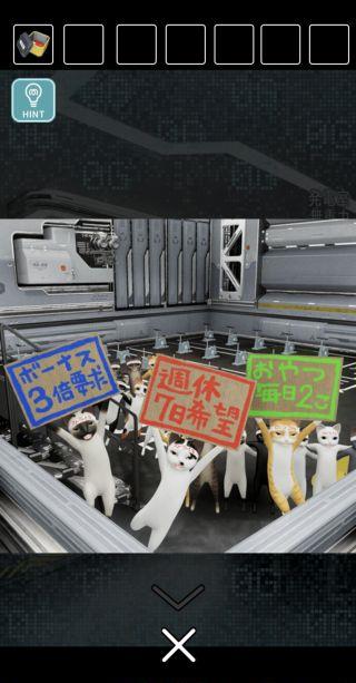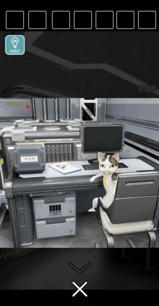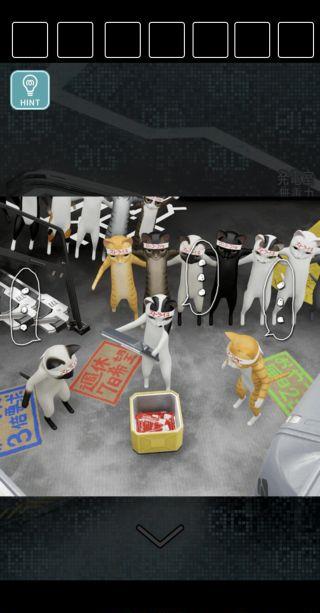 机のネクタイをした猫を拡大して、猫の模様を確認。