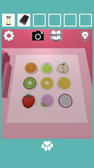電話機を拡大して、先ほどの矢印の順で5つのフルーツを確認。