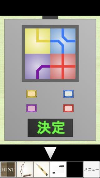 左上に「黄色いチップ」、右上に「青いチップ」、左下に「紫色のチップ」、右下に「赤いチップ」をセットして、クリア。