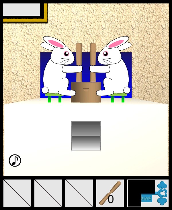 右の装置を拡大して、タイミングよく右のウサギが杵を上げた時に耳の辺りを押す。