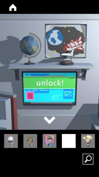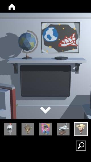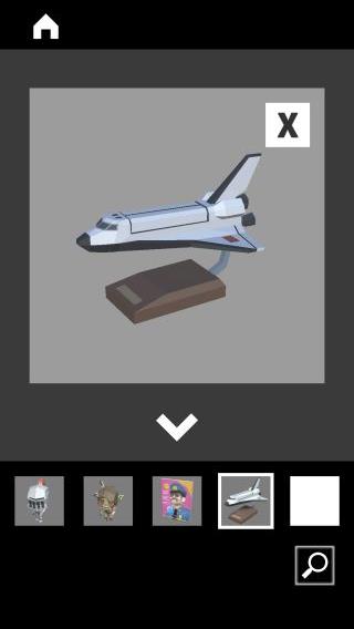 右のモニターを拡大して、右上に「スペースシャトルの模型」を置く。