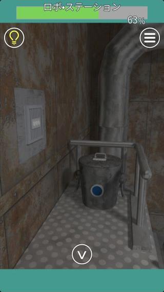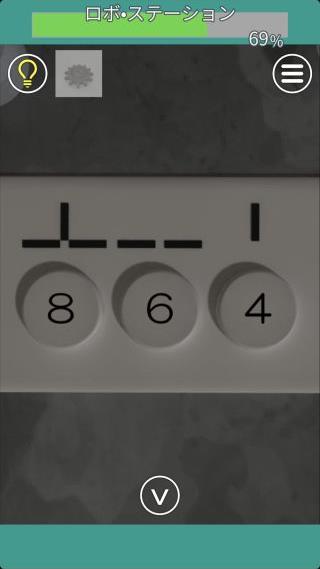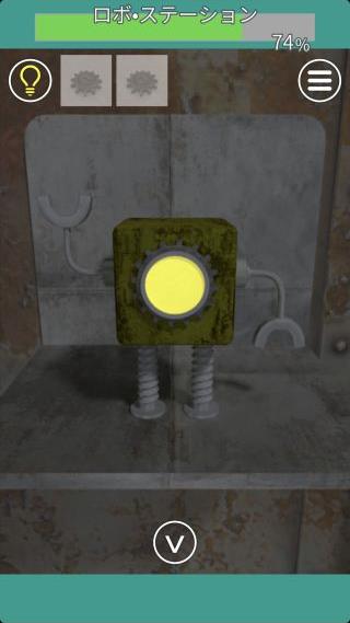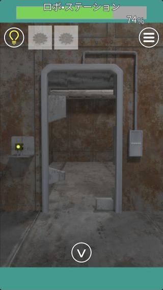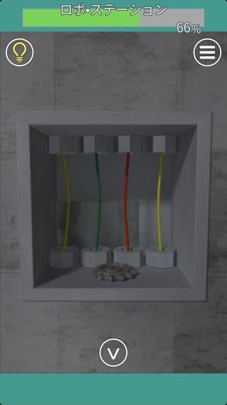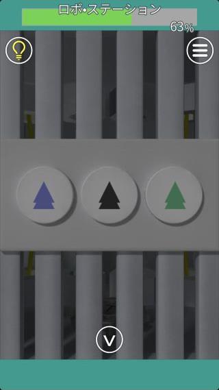 右の扉の左の壁にあるロボットを拡大して、『黄=上下』を確認。