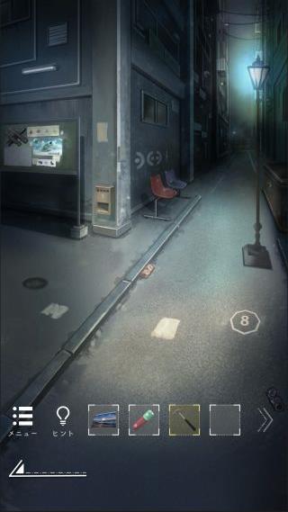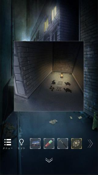 右の路地の暗号を確認して、自販機のある路地に移動。