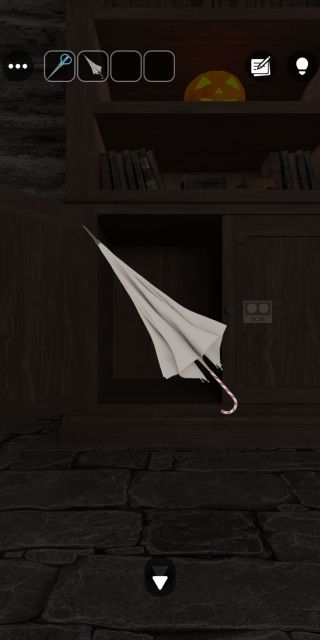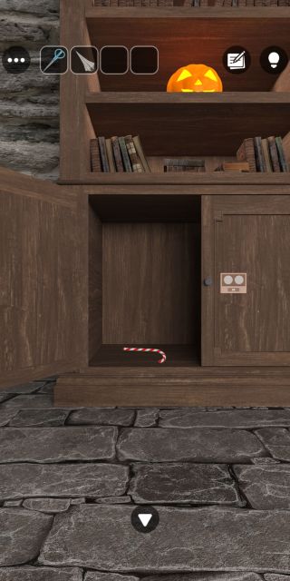 左下の扉を拡大して、4つのジャック・オー・ランタンの目の形に合わせる。