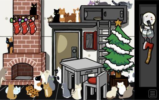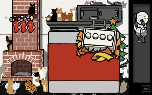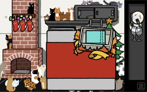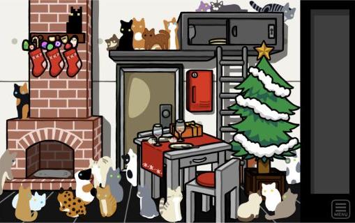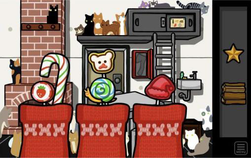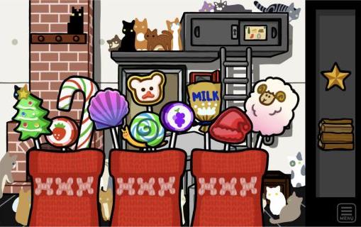 暖炉の上の靴下を拡大して、絵と対応するお菓子を探す。