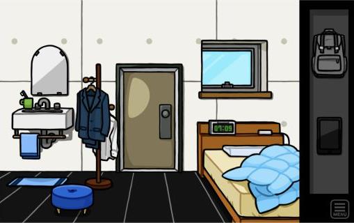 入室の「鍵」はトップ画面の花瓶の花と右に移動した床に落ちている。