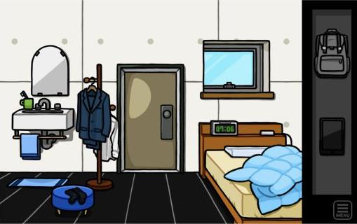 左下のスツールの上の手袋と、壁のスーツをタップする。