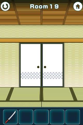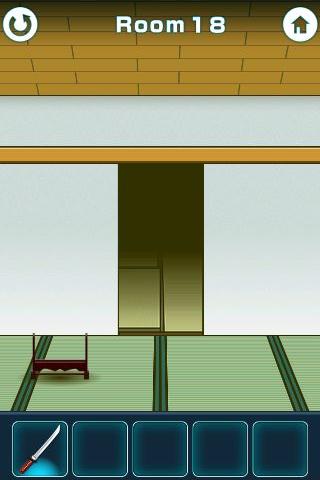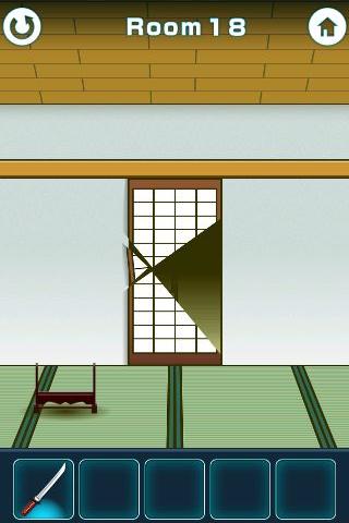 脱出ゲーム “100 Fusumas” 無料 5.0 評価する 送信する Cybergate technology Ltd. Room 18~20 Room 18 左下から「刀」を入手。 「刀」でふすまを切りつけていく。 Room 19 「刀」でふすまの中央を上から下に切る。 Room 20 本体を傾けて、片方が開いたら指でおさえる。 反対側に傾ける。 Floor 1 Room 1~6 Room 7~12 Room 13~17 Room 18~20 Floor 2 Room 21~26 Room 27~31 Room 32~36 Room 37~40 Floor 3 Room 41~45 Room 46~50 Room 51~54 Room 55~58 Room 59~60 Floor 4 Room 61~65 Room 66~68 Room 69~70 Room 71~75 Room 76~78 Room 79~80 Floor 5 Room 81~83 Room 84~88 Room 89~93 Room 94~97 Room 98~99 Room 100 その1 Room 100 その2