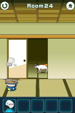 ふすまの穴を時々ネコが通り過ぎる。