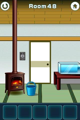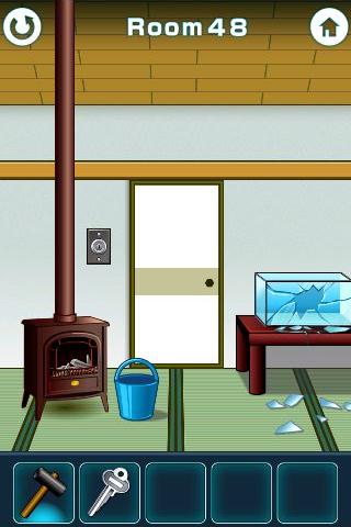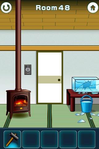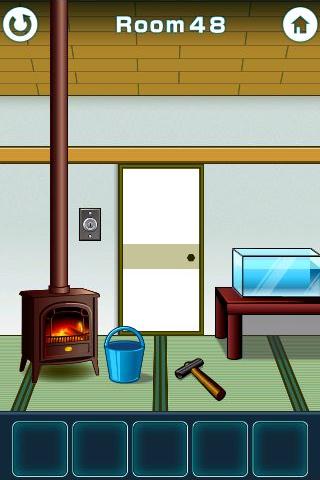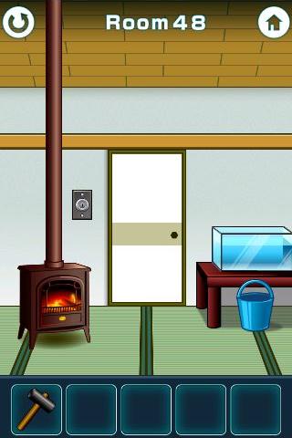 バケツの水でストーブの火を消して、ストーブの中から「カギ」を入手して、カギ穴に使う。