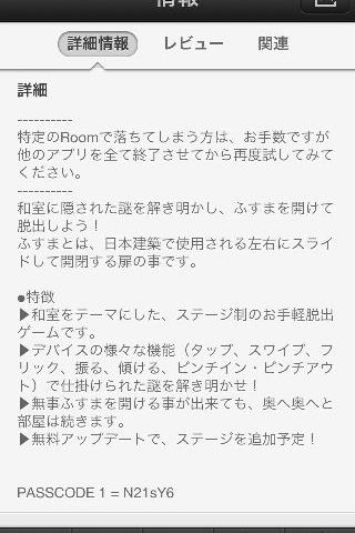 アプリの説明文の下にパスコード1、スクリーンショットにパスコード2が書かれている。
