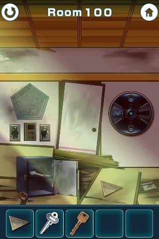床から「三角形のパネル」、金庫から「銀のカギ」、柱から「金のカギ」を入手。