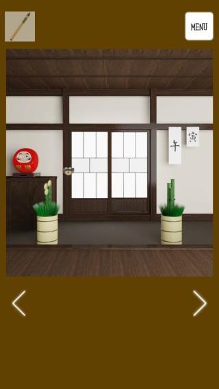 下駄箱の上のダルマを拡大して、「墨のついた筆」を使う。