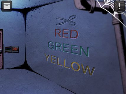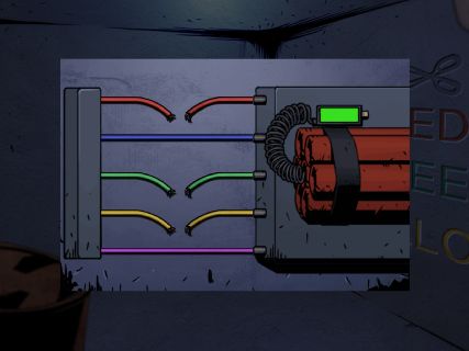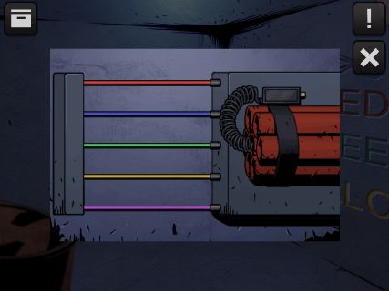右の壁の『赤、緑、黄』を確認して、扉の横の爆弾の前へ。