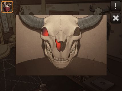 「赤い薬品」を選択して、頭蓋骨の右目(向かって左側)に入れる。