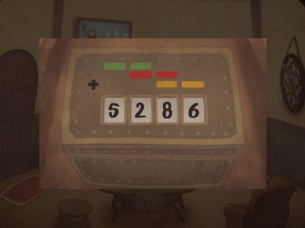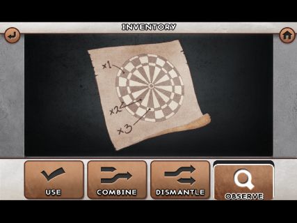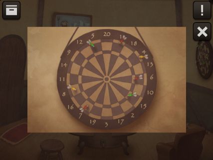壁のダーツボードに刺さっている3色の矢を、「メモ」をヒントに計算する。