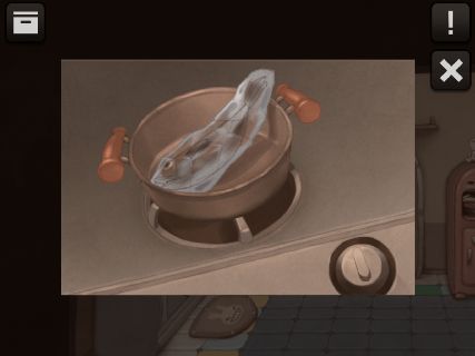 右の棚の引き出しを開けて、「ナイフ」を入手。