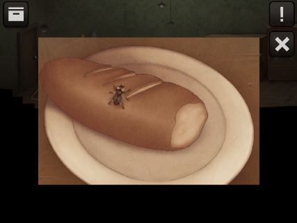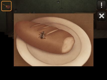 テーブルの上のパンを拡大して、「ハエたたき」を選択する。