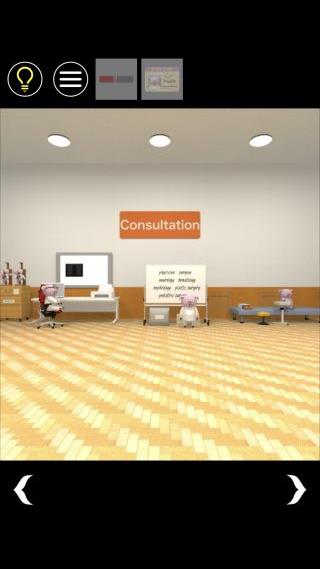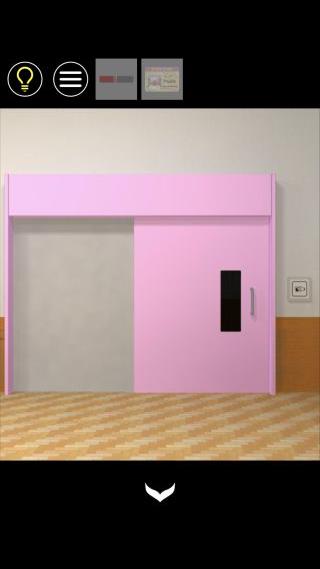 右に移動して、壁の文字の頭文字と右に置かれているフルーツの色『L=紫』を確認。