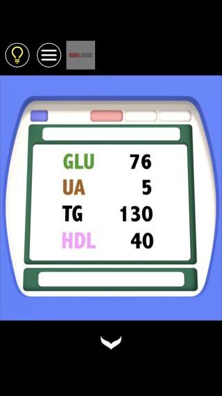 モニターの数値の小さい順で文字の色が『茶<ピンク<緑<黒』なのを確認。