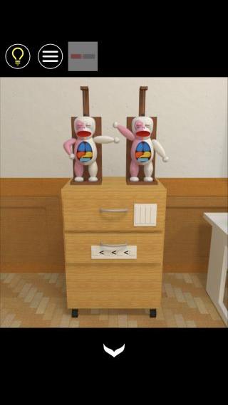 右に移動して、壁の文字の頭文字とカウンターに置かれているフルーツの色『R=黄』を確認。