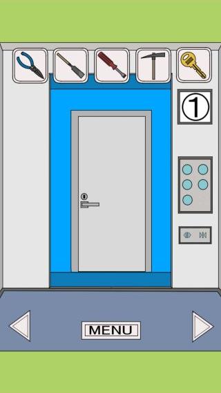 1階に移動して、扉に「カギ」を使って脱出。